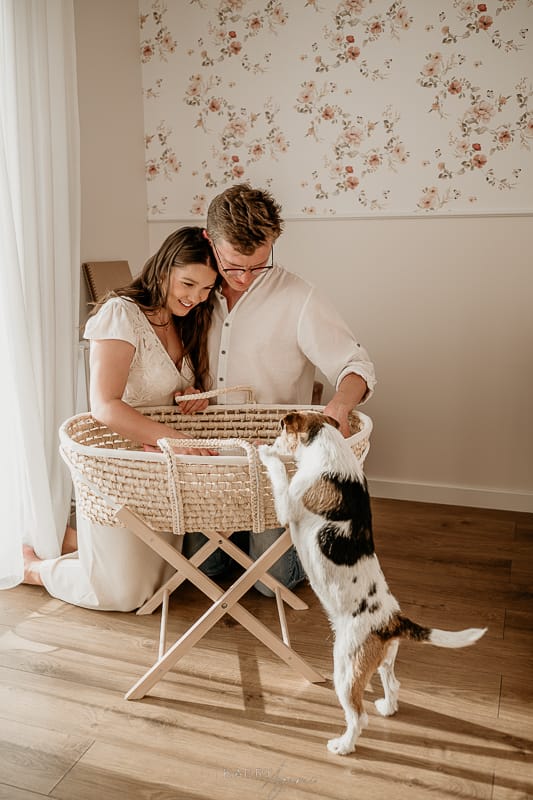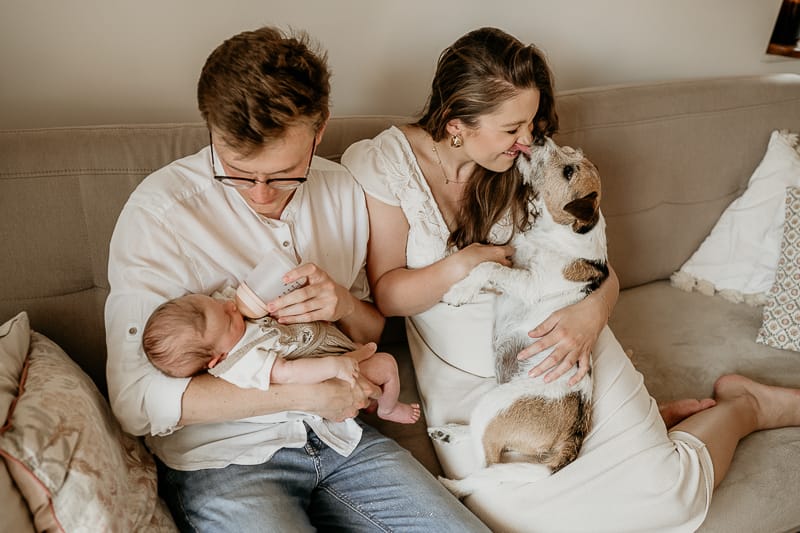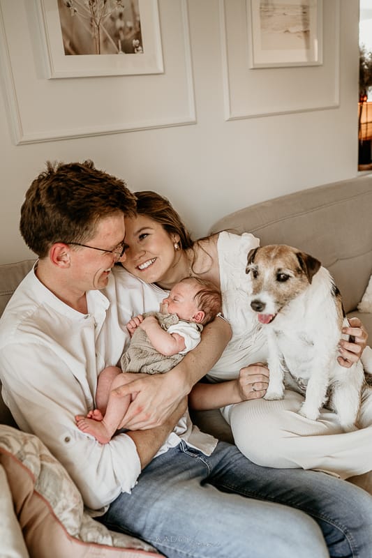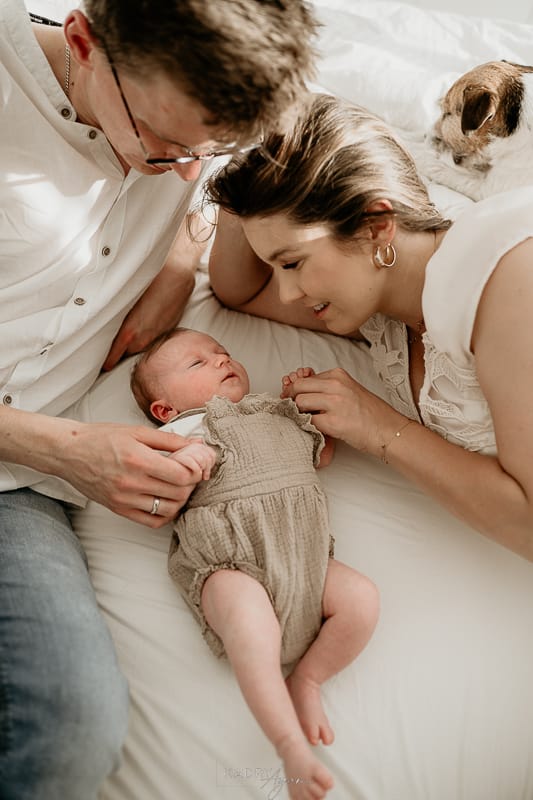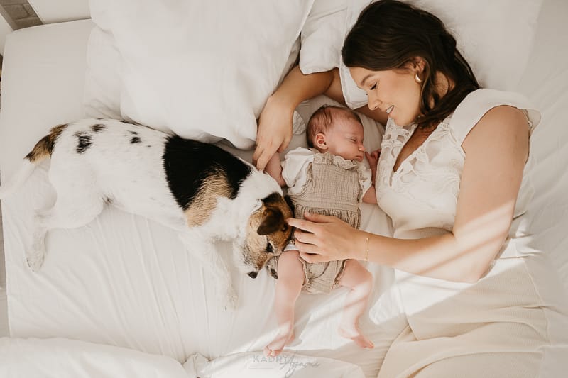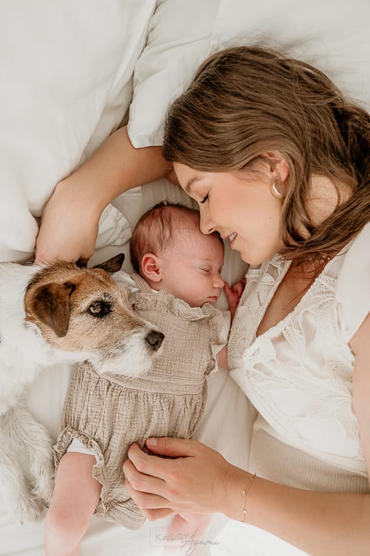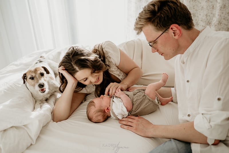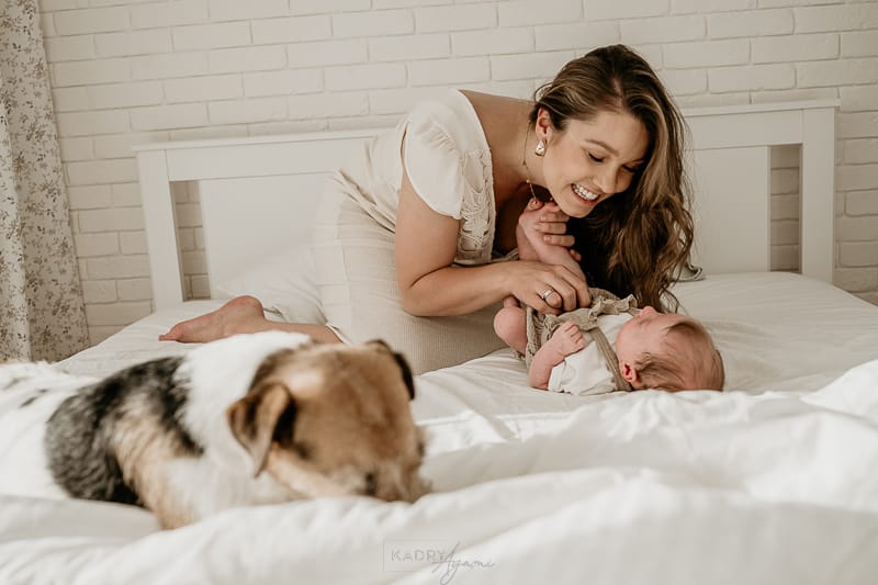 Podczas sesji u Karoliny, obecny był również przeuroczy Jack Russell Terrier, który pilnował najmłodszego członka rodziny w trakcie sesji noworodkowej:) Jakie są jeszcze zalety naturalnej sesji noworodkowej w domu przeczytasz tutaj