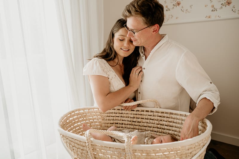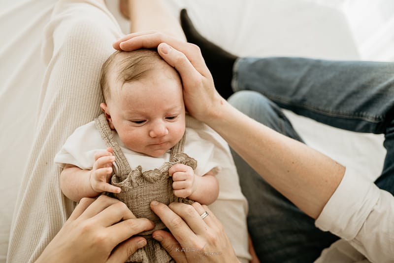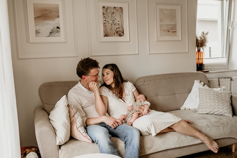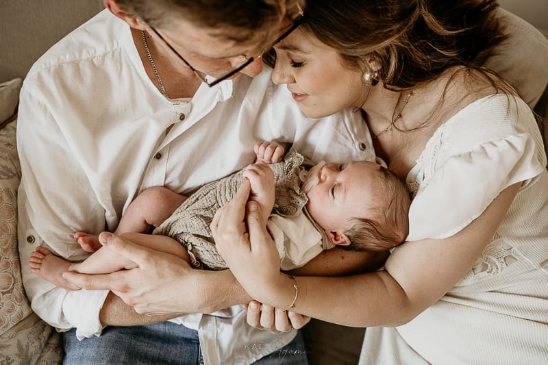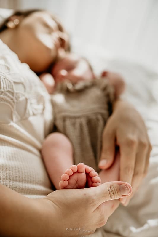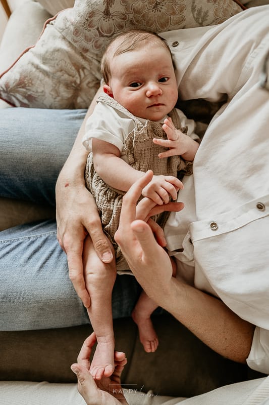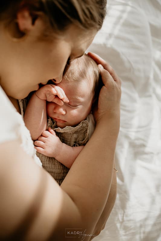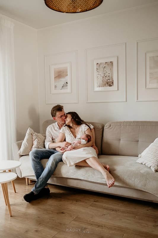 Zazwyczaj przy stylizowanych sesjach noworodkowych, wymagane jest żeby maluszek miał do 14 dni. Wtedy najlepiej śpi i naturalnie układa się w pozycji zapamiętanej z brzuszka mamy. Łatwiej można go pozycjonować i owijać. W przypadku naturalnej sesji noworodkowej w domu, nie ma dla mnie dużego znaczenia czy maluszek ma 10 dni czy 20. Naturalne sesje noworodkowe, pokazują was jako rodziców kiedy tulicie, nosicie maleństwo oraz otoczenie w którym będzie dorastać. Takie kadry wzbudzają szczere emocje po latach. Noworodek zmienia się z dnia na dzień. Po miesiącu staje się już „dużym” niemowlakiem, więc jeśli tylko zależy wam na pokazaniu jakie maleństwo macie w domu to warto umówić się pod koniec ciąży na taką sesję w domu.