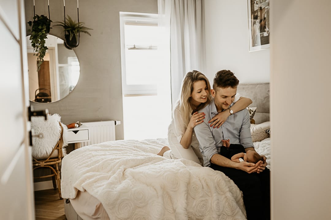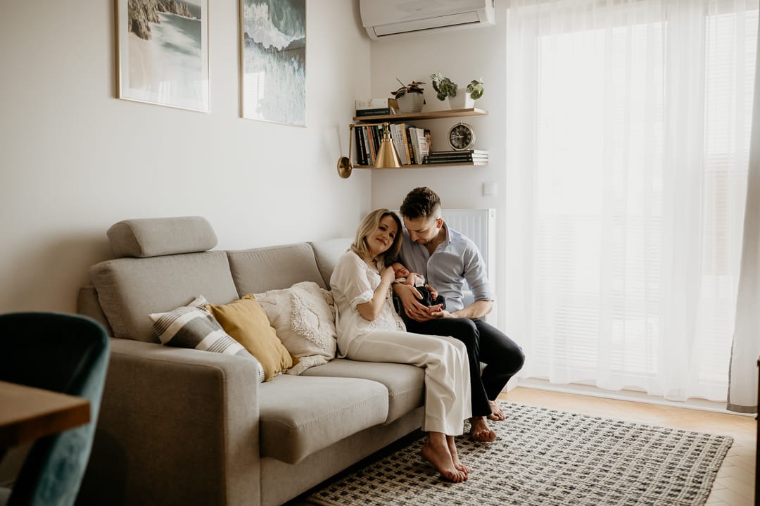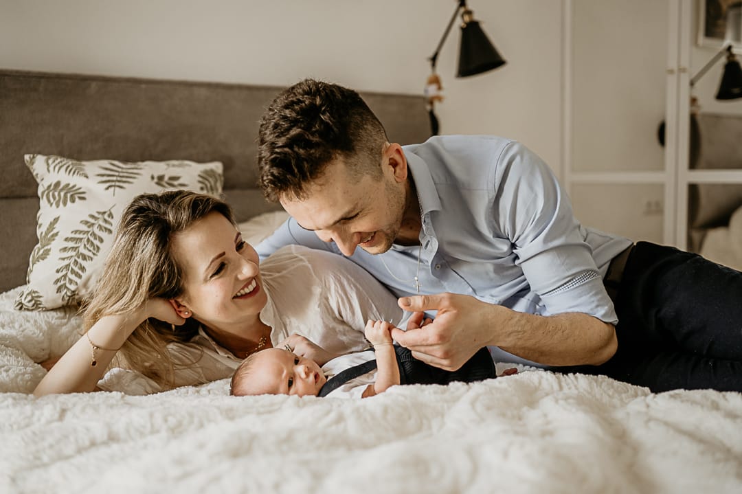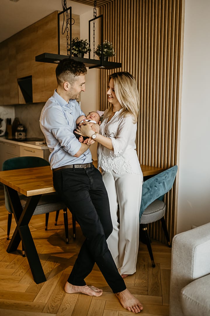 Podczas sesji noworodkowej lifestyle, to fotograf przyjeżdża do Twojego domu, aby stworzyć swobodną i komfortową atmosferę dla Ciebie i Twojego dziecka. Nie musisz martwić się o sztuczne pozy czy skomplikowane rekwizyty – celem jest uchwycenie naturalnych momentów, więzi między świeżo upieczonymi rodzicami a maleństwem. Sesja trwa zazwyczaj od 1.5 do 2 godzin. Nie martw się, że maleństwo będzie płakać czy wymagać karmienia i przewijania! Podczas naszej sesji noworodkowej lifestyle jest czas na przerwy na karmienie i przewijanie. Staram się też nie przedłużać sesji mając na względzie komfort wasz i maleństwa. Dzięki temu możesz cieszyć się sesją bez stresu i presji, co przekłada się na lepsze efekty końcowe.